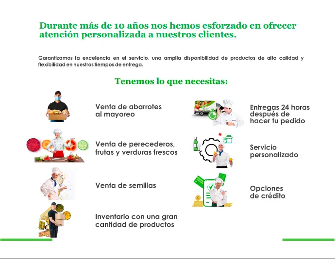Somos una Comercializadora y Distribuidora especializada en frutas, verduras, granos, abarrotes,